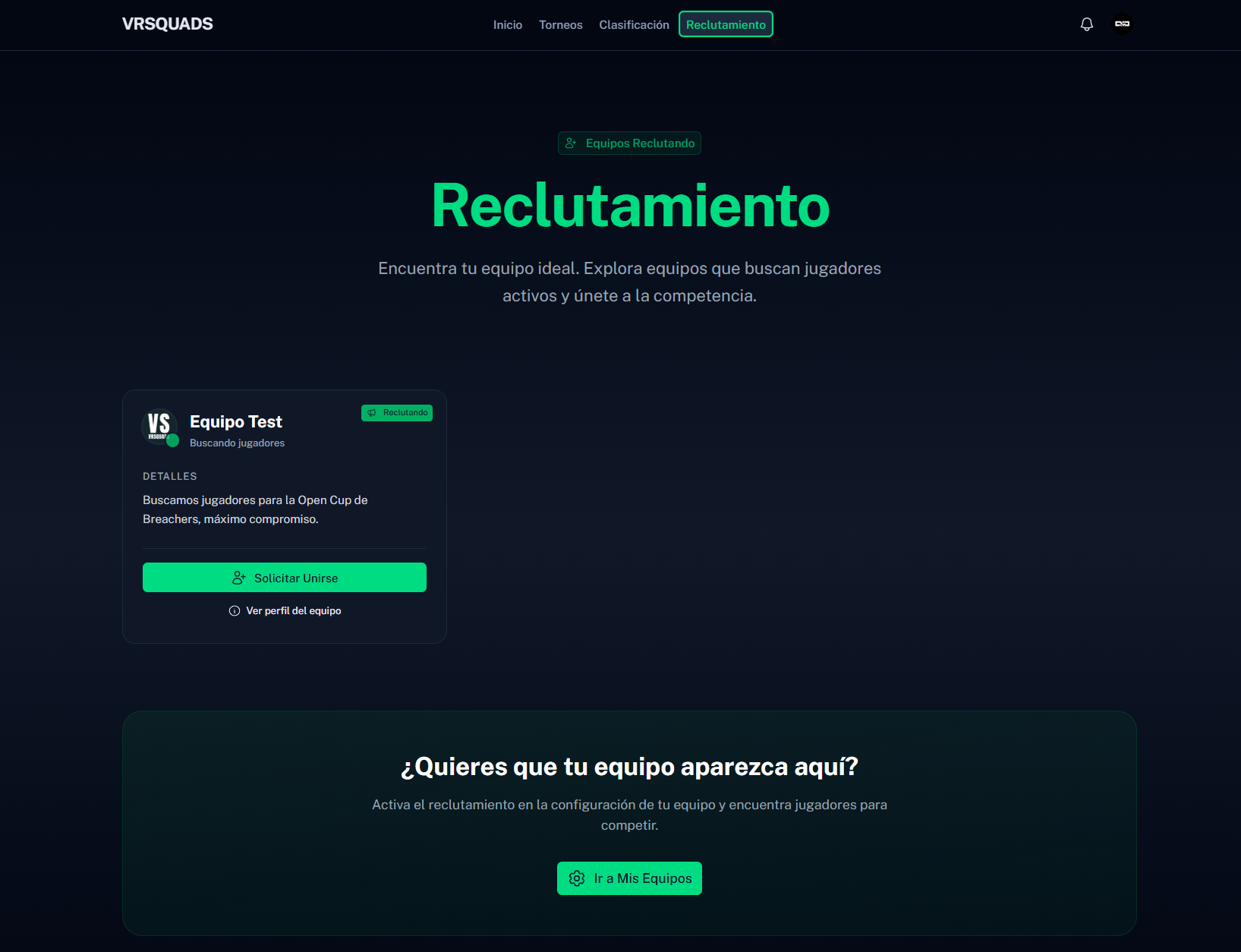 En VRSquads estrenamos la sección de Reclutamiento, pensada para que ningún jugador se quede fuera por no tener equipo.